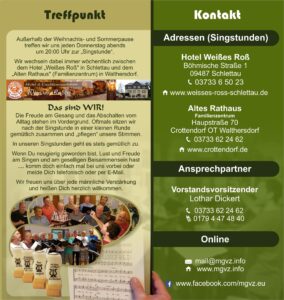 Habe für den Männergesangverein Zschopautal e.V auf deren Wunsch Anfang des Jahres eine Visitenkarte erstellt, nun endlich konnte ich auch nach vielen Stunden Arbeit den gewünschten Flyer fertigstellen.