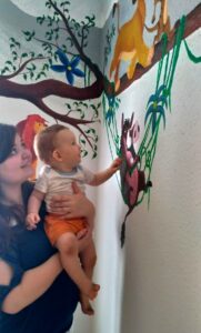 Um die Veränderung für mein Engelchen so angenehm wie möglich zu machen, habe ich versucht sein Kinderzimmer nach den wünschen der Mama zu gestalten. Nach 4 Sitzungen und 30 Stunden Arbeit war das Werk vollbracht. Habe das erste mal mit Acrylfarben gearbeitet. Was aber besonders schwer war, auf Rauhfasertapete einigermaßen genau zu malen. Ich habe mich aber über die ausschließlich positiven Rückmeldungen vieler sehr gefreut.